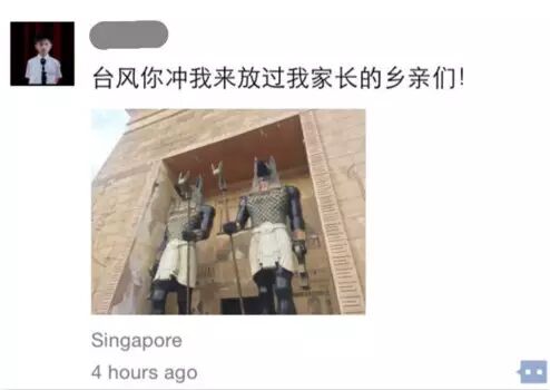 正如我的这位好朋友所说的一样,只有真当自己远离家乡的时候,才能体会到什么是叫“生是你的老百姓,死是你的小精灵”。看着电脑上不断变换的台风路径图,关注着新闻里和身在家乡的朋友发出来的狂风暴雨的照片,被吹得东倒西歪的树和被水淹没的道路,此刻难过和烦躁的心情也许只有一样漂泊在外的你同样会明白。