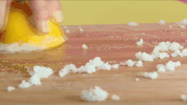 准备一个柠檬和一碗食盐,柠檬含的有机酸,不仅有很强的杀菌作用,还能去除异味,食盐则有抑菌作用。一起搭配,用柠檬蘸盐粒在砧板上打圈圈,把深浅不一的划痕都擦拭到,再冲洗干净,保证你的砧板跟新买的一样干净~