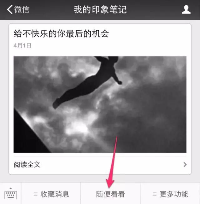 还记得你曾经用公众号「我的印象笔记」收藏的文章吗?现在就点击公众号菜单中的「随便看看」,把之前收藏的好文章都翻出来看看~每一篇忘记的好文章,都是一份小惊喜~