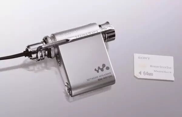 索尼NW-MS70D绝对是在第一眼上赢人的类型,它应该是那时候最小的全金属MP3了,看起来异常华丽。索尼 NW-MS70D机身采用钛合金材料,对外部冲击非常强,且在下端装有可扩充存储容量的记忆棒Duo插口,当感觉到所内置的闪存容量不够的时候,可利用记忆棒Duo来扩充。