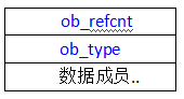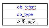 我们再来看一个特化object结构,PyIntObject。它由三个成员组成 ob_refcnt,ob_type,ob_val,其结构如下图: