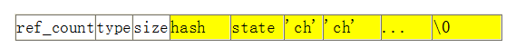 Python用PyStringObject 来描述字符串对象,python字符串对象也是一个变长的数据对象。除了变长对象头,字符串对象还包含了字符数组和字符串常量的哈希值,此外对象内部还有一个state标志位用来标识这个对象有没有被python的intern缓存机制处理。