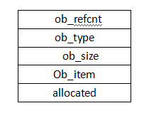 Python用PyListObject来描述列表对象,PyListObject的数据结构如下图: