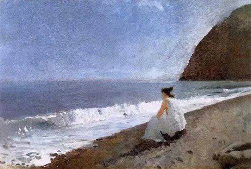 该画作深受印象主义风格影响,根据歌德的诗剧《伊菲姬尼在陶里斯》创作,表现她暮盼着无尽的大海时对家乡的眷念。