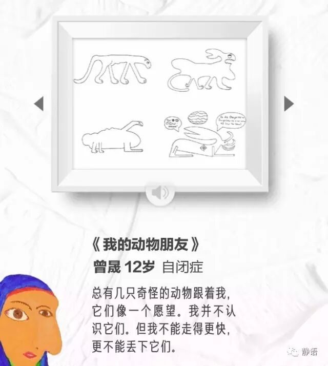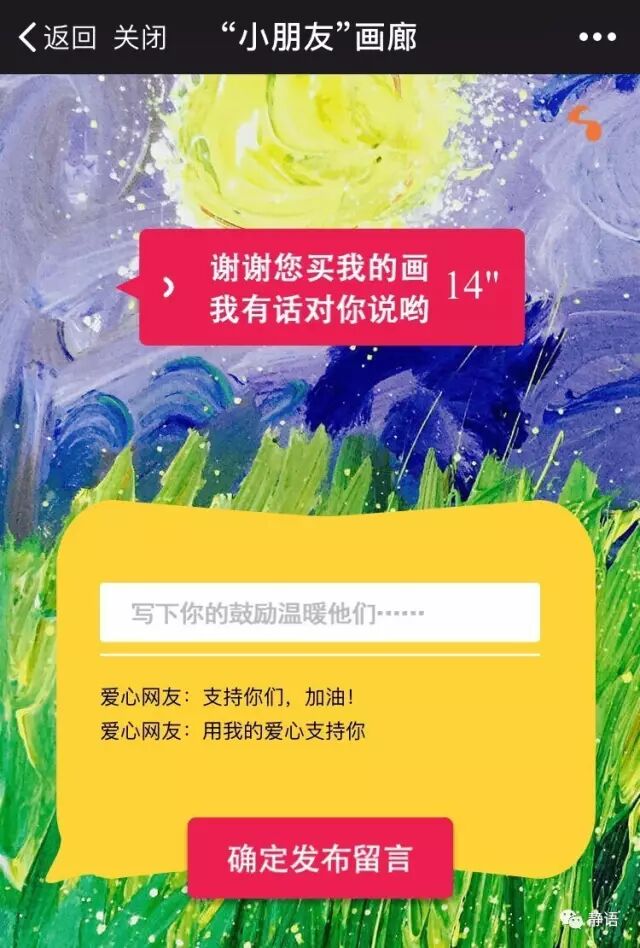 另外,每一幅画都附有作者信息,绘画意图,购买后你不但能听到作者的语音,还能留言与他交流。那些模糊的影子成为了一个个实实在在的,有情感有思想的人。特定的受助对象,有设计感的形式,让双向互动成为可能。