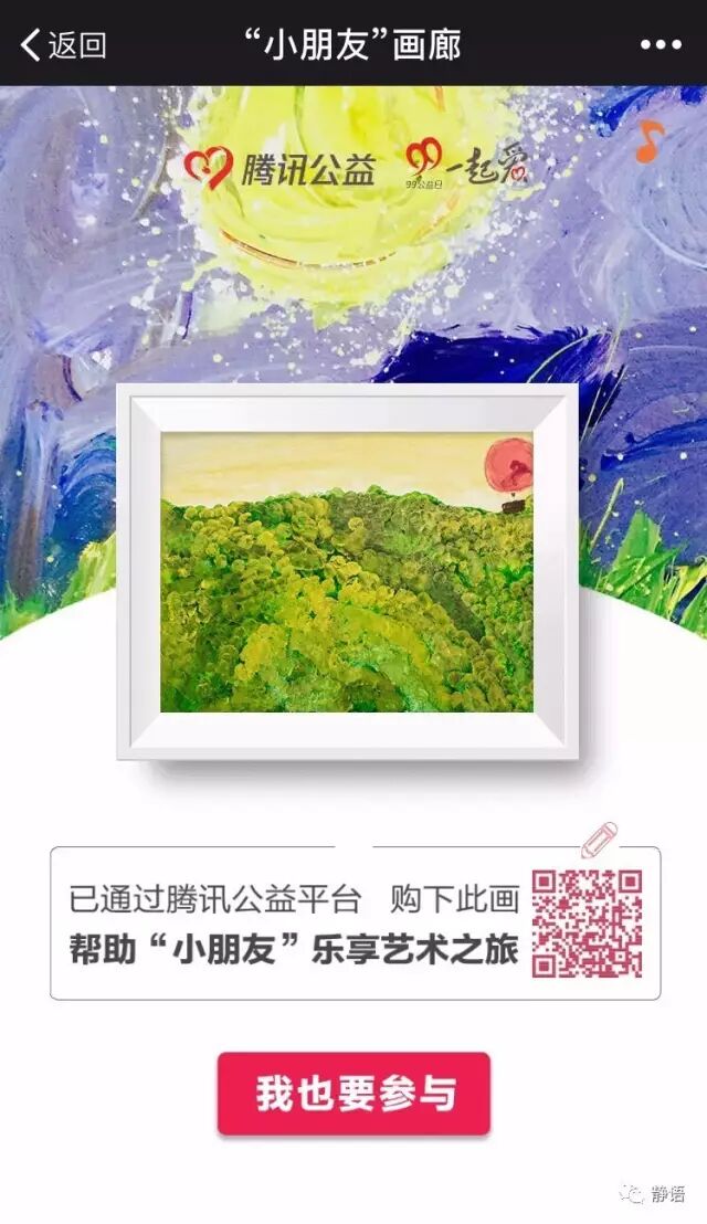 腾讯公益平台今天的公益项目“小朋友”画廊可谓大获全胜,成了爆款。用一元钱买下一幅手机版的画作,就可以帮助一位患有自闭症或精神障碍的“小朋友”。