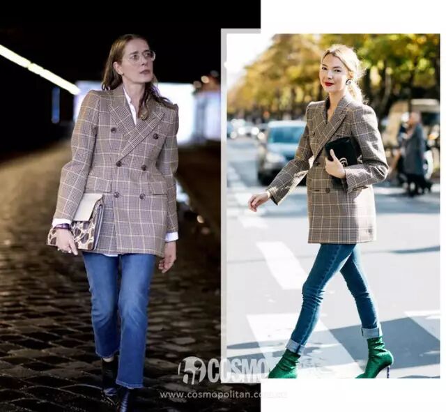 上班难免需要一些比较正式的look,这时牛仔裤搭配西装外套就能完全撑得住场面,双排扣的则更加复古,搭配破洞流苏牛仔裤,有些许英伦风。晴晴最喜欢这样的搭法,率性又得体。