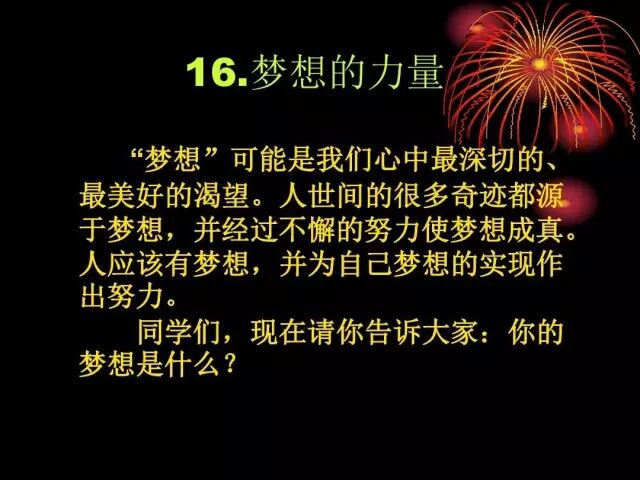 我们把这页幻灯片中不应该出现的内容去掉,改成「字儿少」的,并且把它分成两页,将问题单独列为一页。在演讲者说出“同学们,现在请你告诉大家”这句话的同时,才切换到第二页。并配上带有「隐喻」的图片,让演讲内容更生动,甚至显得意味深长。