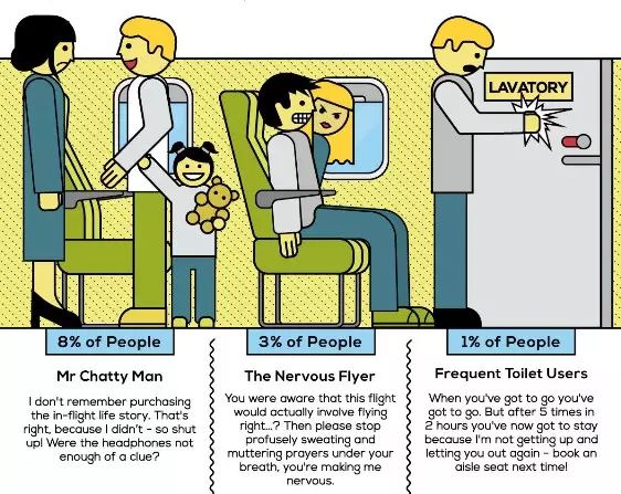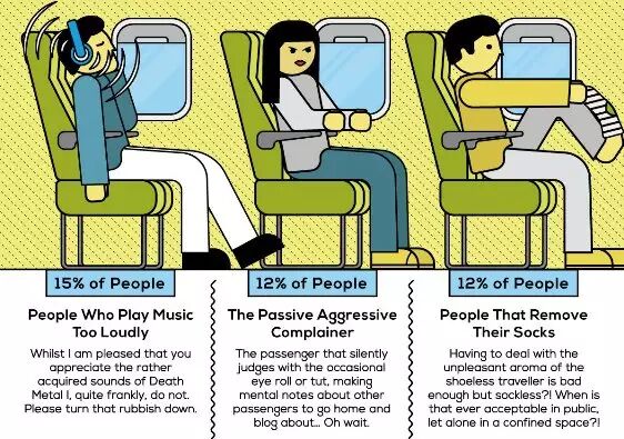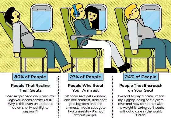 上飞机之前,我们除了检查各种行李之外,总会有很多一路上的憧憬,比如看到云海、日出、邻座的颜值等等。不过现实中原来是这么狗血的。而最常见的情景就是,遭遇一个不招人喜欢的邻座。