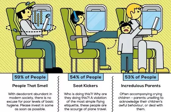 外媒做了这样一个小调查,评出了“乘机时最让人讨厌的21种人”,小编看完觉得简直总结的精辟!没有最讨厌,只有更讨厌!今天小编列出其中的12条,大家一起来有没有感同身受的赶脚?