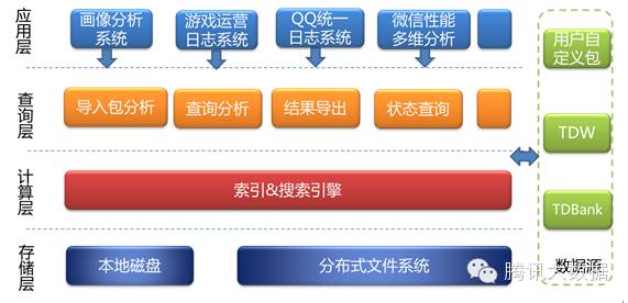 ** 数据接入:**实时、灵活。支持用户自定义包导入;已入库到TDW的数据,可配置化导出到Hermes,“一次索引、多次使用”;Hermes与TDBank(TDBank是腾讯数据银行,主要负责数据的收集,分发,预处理以及管理工作)做了打通,实现数据从生产环境实时采集入库Hermes。