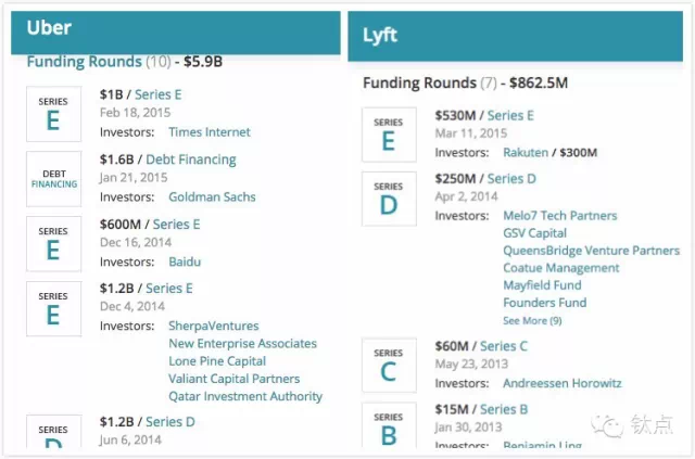 需要消耗那么多也不足为奇。需要注意的是因为各种直接竞争的需要(双方基本都在同一城市互相投放promotion code),两者从去年以来都分别加大了融资力度,今年年初的两个E轮更是紧跟着发生,虽然,资金差异依然巨大。
