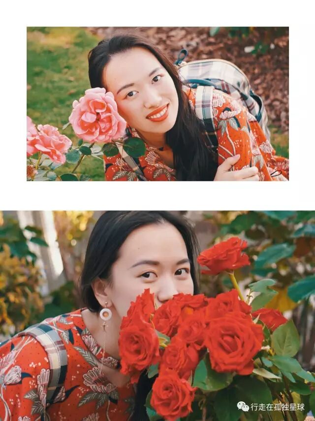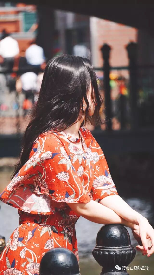 今天在她的镜头下我重新审视自己,原来自己也可以这么美丽。妖艳的印花大红裙子在阳光下显得格外耀眼。