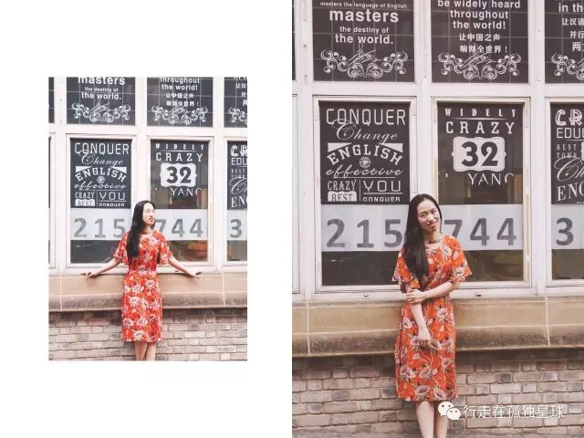 我喜欢自己傻笑的样子,也喜欢自己被抓拍时傻得可爱的样子,那个才是真正的我呀。看到红色的电话亭,我就忍不住跳过去了,红色的裙子红色背景,怎一个热辣呀。