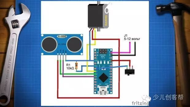 小编说:这个视频用到的Arduino知识很少,就用到了一个舵机和超声波传感器,然而做出了非常实用的设计,这其中设计机械结构对国内的学生来说要理解通用技术,还用到了手机app来辅助进行设计,动手制作合页,连杆,钻孔等,用到了传统木工、金工的工具,充分的体现了创客的精髓。创客是创造性解决问题的人,创客最终要回到现实,不是一帮沉迷于技术的geek。