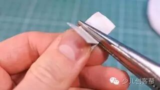 (小编在此感叹歪果仁的动手能力真溜啊)用易拉罐做一个合页,剪一部分,抛光,弯折出支架,并且为轴大空。然后我把合页站到盖子上,所以盖子和合页都要打磨然后再黏合。