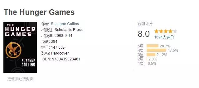 《饥饿游戏》是我今年所读的唯一一本小说。英文坚持读两节,再往后读,甜蜜蜜便会随之溢出。