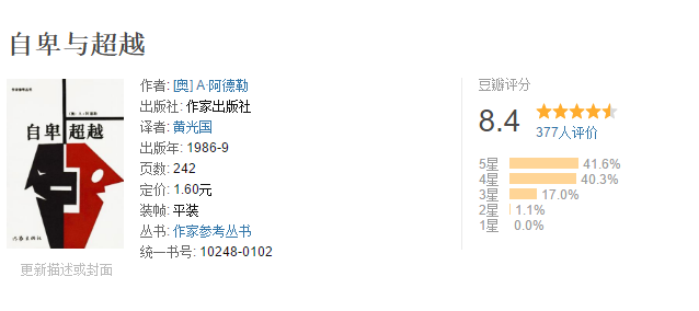 并不只是关于自卑,我觉得是个体心理学书籍中独一无二的杰作,就比如勒庞《乌合之众》之于社会心理学。