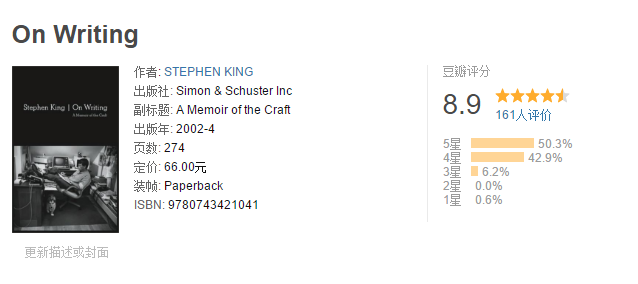 Stephen King的写作回忆录,和另一本《On Writing Well》同样值得仔细推敲。
