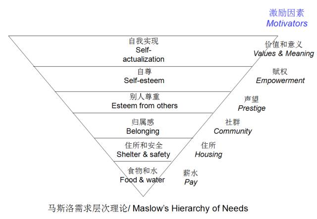 没有人是愿意被告知如何做事情,也不想被推销想法或产品,意味着人自生下来便有自主、自由及自在的特点。从马斯洛的著名金三角需求层次来看,它更代表当时社会的环境及人类对基本生存的滿足渴求。可是现在大部分年轻人在基层需求方面已不用忧愁,故对更高层次的需求如自尊(self-esteem) 及自我实现(self-actualization) ,甚至超我实现(Above self-actualization) 更为关切。也许金三角的型状更像倒过来看来得更贴切。