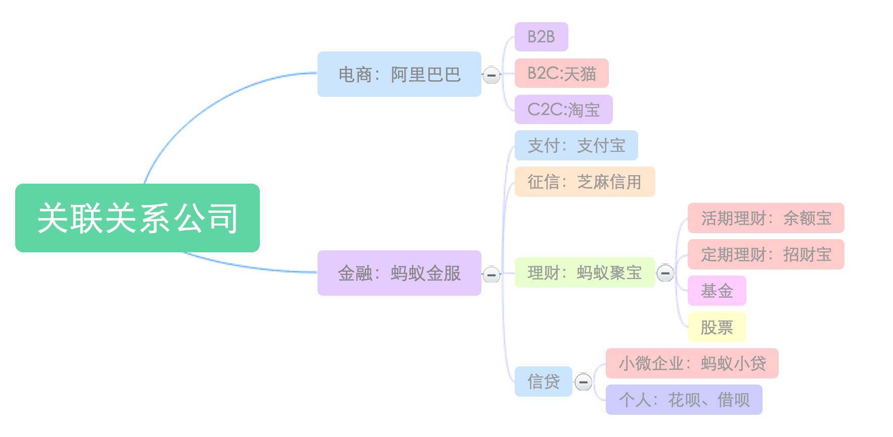 版图庞大、影响深远的阿里巴巴和蚂蚁金服,也是从曾经的一伙创业团队发展起来的。起初的业务是电商,现在这块业务已经上市,即我们熟知的阿里巴巴,包括 B2B 阿里巴巴、B2C 天猫、C2C 淘宝等。