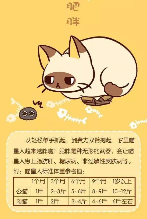 猫咪的标准体重表如下还请参考,超过标准体重的10%-15%,就视为肥胖。