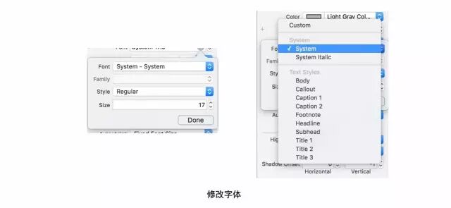 在上图中的第4步中的修改字体,当我们点击Font输入框中的灰色箭头后会出现一个Popup,里面的第一个下拉框是Font ,当我们点击展开时,就能看到很多选项了,默认选择的是system。