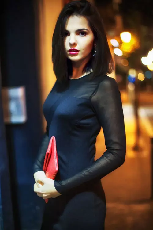 ▲ 回眸一笑。扭头的时候上身要保持正直向前,才会有优美的效果,另外在后面的那条腿,脚要蹬出去,有拉长感才会显腿长。