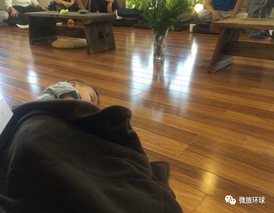 我们在上课、在分享,彩妃的小儿子安然地在一旁睡着了。