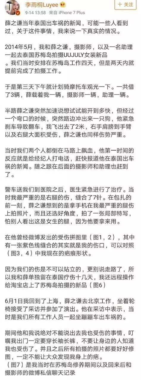 于是乎,开始各种毁薛的形象,说吃软饭、车祸拍女方伤处的照片,之后又被网友炒着薛删了当初车祸发的那张照片。