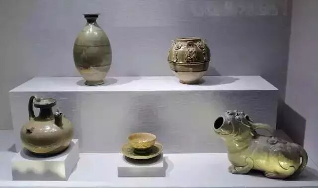 从左至右)战国原始瓷器、东汉早期青瓷、西汉原始瓷器