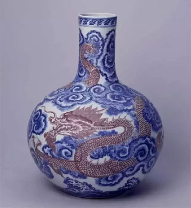 清乾隆青花釉里红云龙纹天球瓶-北京故宫