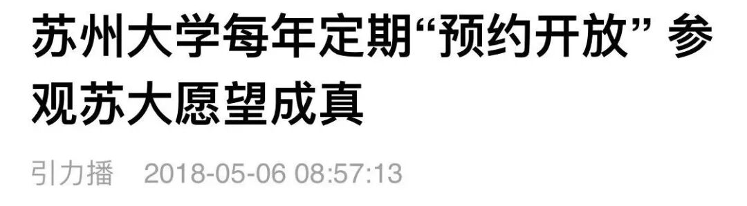 据悉,首次校园开放日活动定在2018年5月19日,活动预约人数控制在1000人/天以内。这一天也是学校一年一度的校友返校日,届时全球的苏大校友将齐聚母校,学校也会组织精彩纷呈的活动。