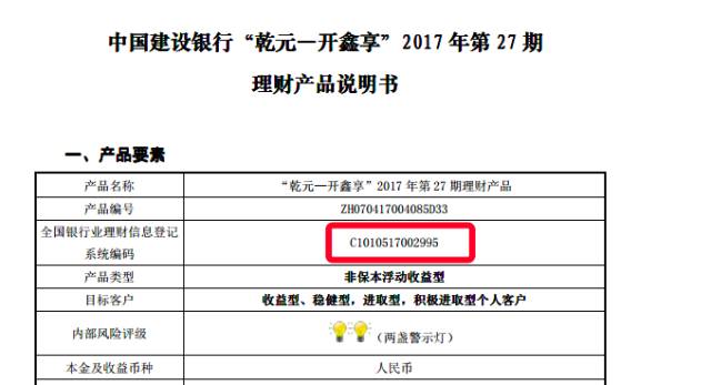 这个编码很好找,在理财产品的说明书里肯定能找到,没有的就是假的,直接忽略吧。比如下图是一款理财产品说明书。