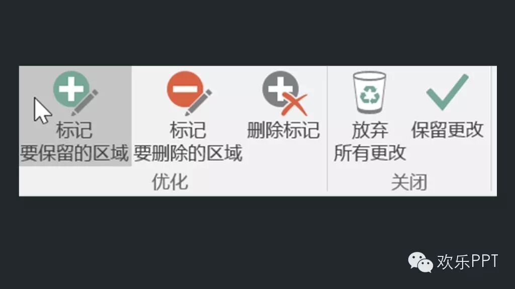 以抠除上例中的小斑点为例,直接通过任意多边形圈住这些斑点,然后先选图,再选多边形,格式丨合并形状丨剪除,搞定。