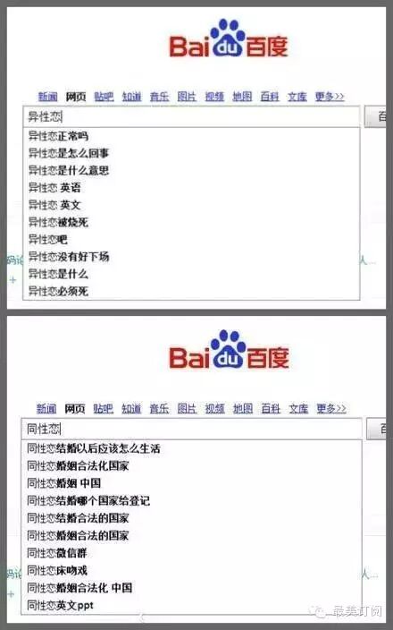 →_→ 在度娘上输入“异性恋”、“同性恋”后,跳出的快捷索引还真是......让人直不起来呢 #恶意满满的世界#