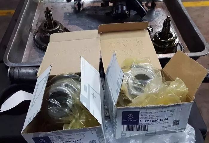 出现问题的两只正时轮,出现故障后就极易导致正时错位,发动机异响在所难免。更换正时轮组件需要注意的是正时的对正,这个有经验的应该没有问题。