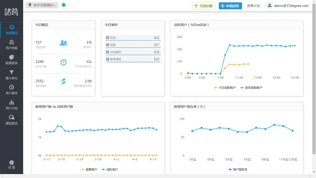 能够搭建起诸葛IO这款强大的App数据分析平台,得益于其浓厚的技术和数据的积累。诸葛IO隶属于37degree(北京乐享天下科技有限公司),是一家专业的数据分析公司。他们在过去3年,致力于准确、深入的数据分析和建模;灵活、高效的数据应用和反馈。