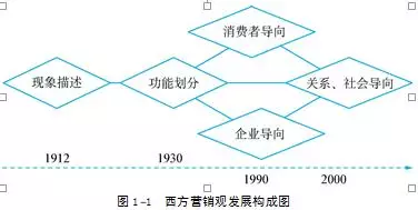 西方营销观的发展历程首先是建立在对营销现象与其他社会现象的剥离及描述的基础之上,从开端的单纯现象描述到后期清晰的功能界定、划分。在这个基础上,此后的发展过程中分别出现了消费者导向型的营销观,企业组织导向型的营销观,此二者最后催生出的是兼顾企业和消费者的关系导向型营销观。从这样一个发展脉络中我们可以清晰地看出西方学者从现象向本质迈进的营销观发展进程。
