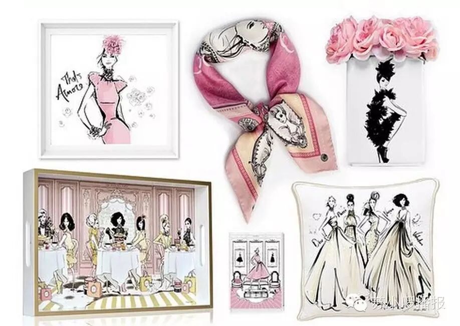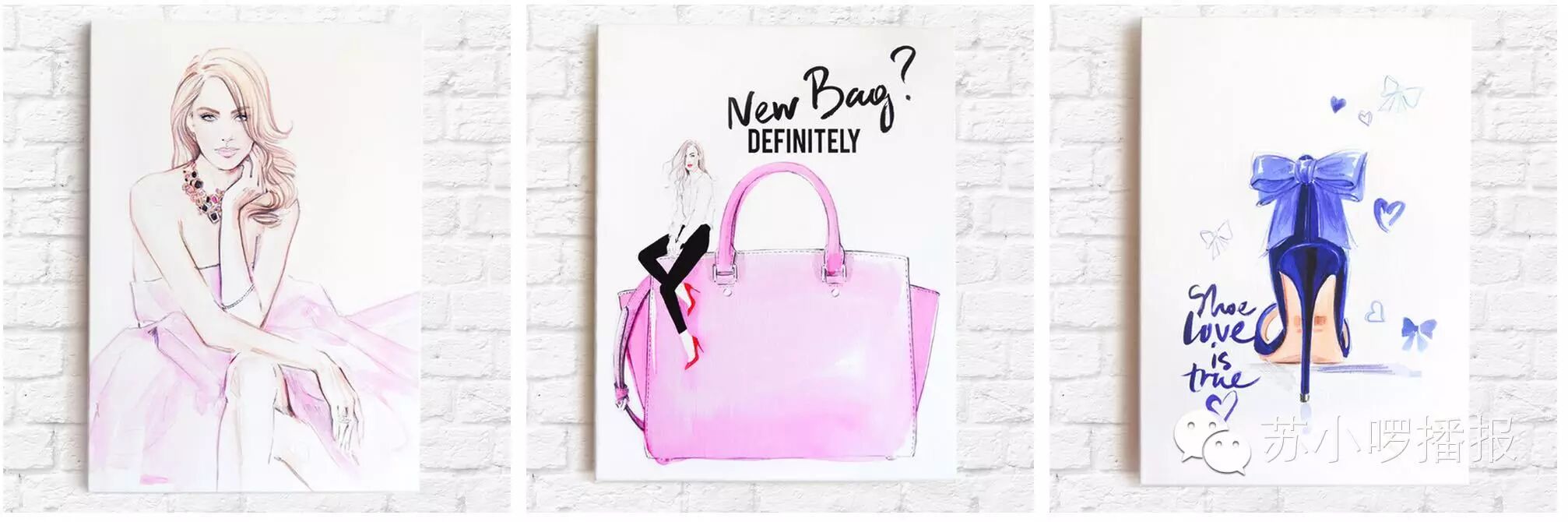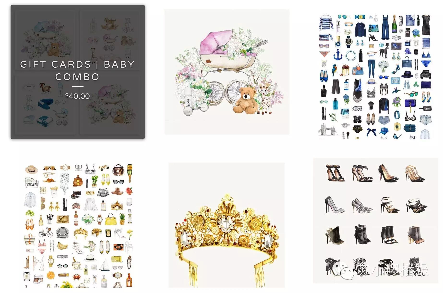 除了供稿给杂志,她也在自己的网站上出售自己的时装装饰画。