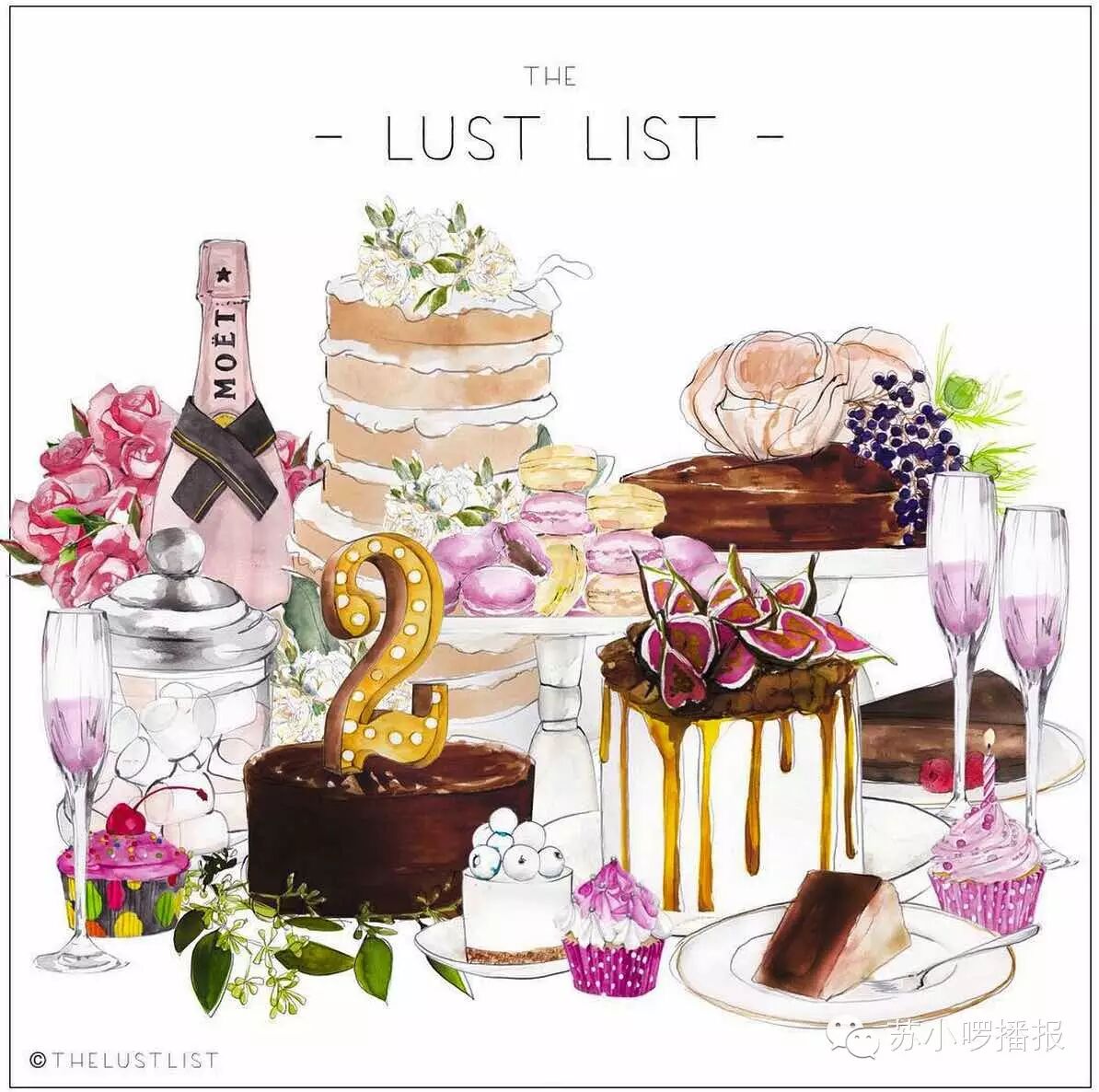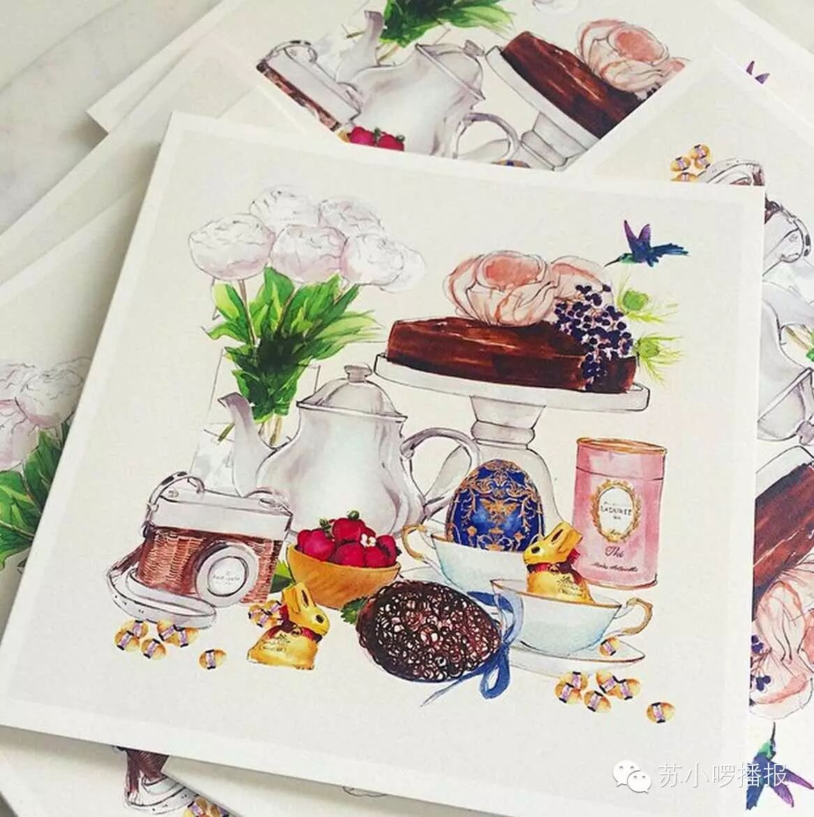 Sally的插画并不局限于时装画,同时有各种美食美酒珠宝,也有婚礼卡片和包装纸定制····