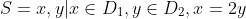 使用同样的集合D1、D2,还可以形成另一种关系S,它包含所有这样的有序对,其中第一个元素是第二个元素的两倍。因此,可以将 S 表示如下: