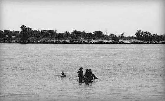 They went back in the river, their feet touching the muddy bottom, toes sinking into earth and sea.