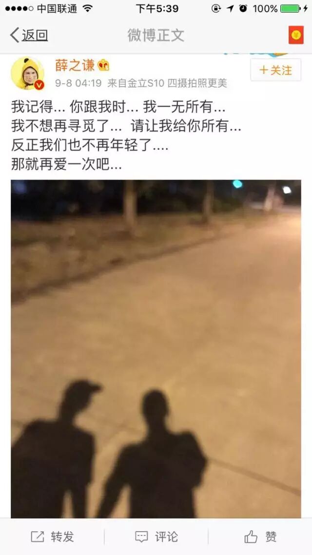 今早4:19薛之谦与高磊鑫同时发了一张牵手照。