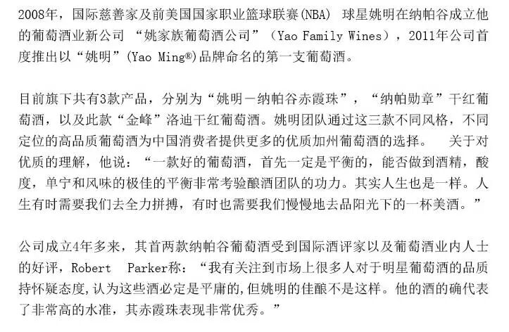 我是金峰(GOLD PEAK),我爸是姚明,我来自美国纳帕。