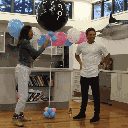 2015年,Michael再次正式求婚。婚后数月,她怀孕了!于是就有了两人兴奋戳气球庆祝的画面。