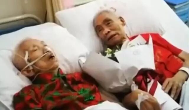 刚过去不久的七夕那天,湖南一家医院里,87岁老人刘万才插着引流管手捧鲜花,给患有重度老年痴呆的妻子唱起了,他们年轻时最爱的情歌。这是他们结婚的第个60年头了。