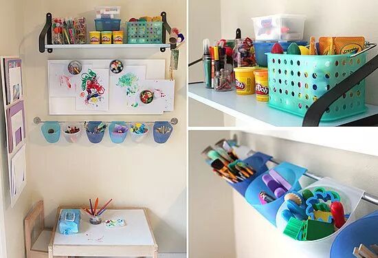既然这个角落属于孩子,那么也要承担起相应的责任了。我们就借着这个机会帮助孩子建立良好的整理习惯。材料怎样组织摆放他们要想办法。用过之后清洁,收纳也是他们的工作。要求他们一步到位学会整理自己的房间不那么容易,但是从小小的艺术角开始就难度小多啦。