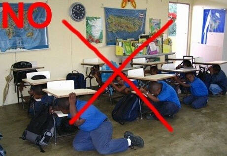 当建筑物倒下时,每个只“蹲下和掩护”的人都几乎全被压死了。而那些躲到物体,如桌子,或汽车下躲避的人也总是受到了重伤或死亡。