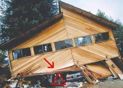 简单地说,当建筑物倒塌落在物体或家俱上的屋顶重力会撞击到这些物体,使得靠近它们的地方留下一个空间。这个空间就是被我称作的“救命三角”。物体越大,越坚固,它被挤压的余地就越小。而物体被挤压得越小,这个空间就越大,于是利用这个空间的人免于受伤的可能性就越大。